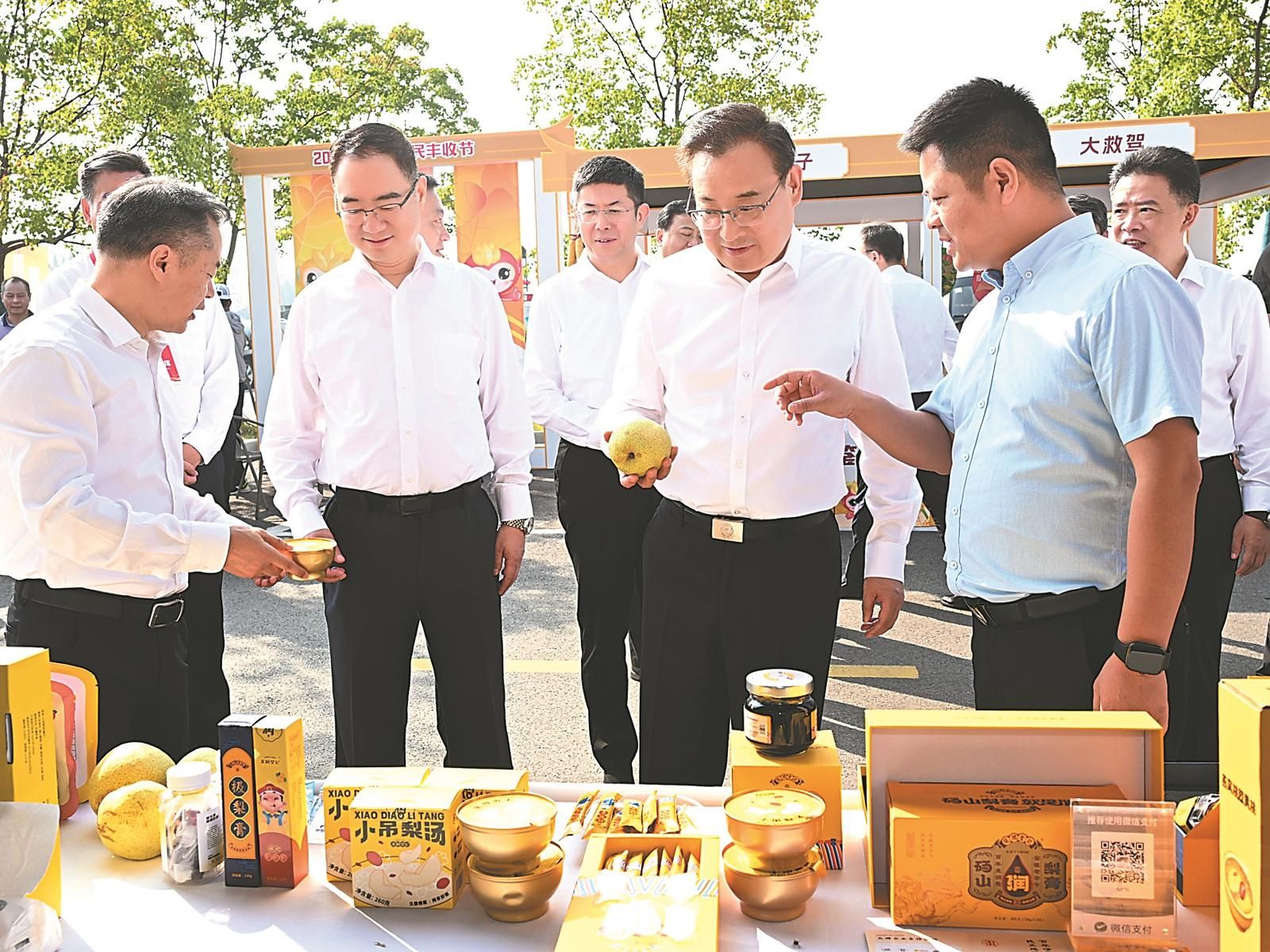 9月23日上午,省委书记梁言顺,省委副书记、省长王清宪等在2025年中国农民丰收节安徽主场活动巡展环节中边走边看,与参展农民群众和企业家深入交流。本报记者 杨竹 许昊 摄